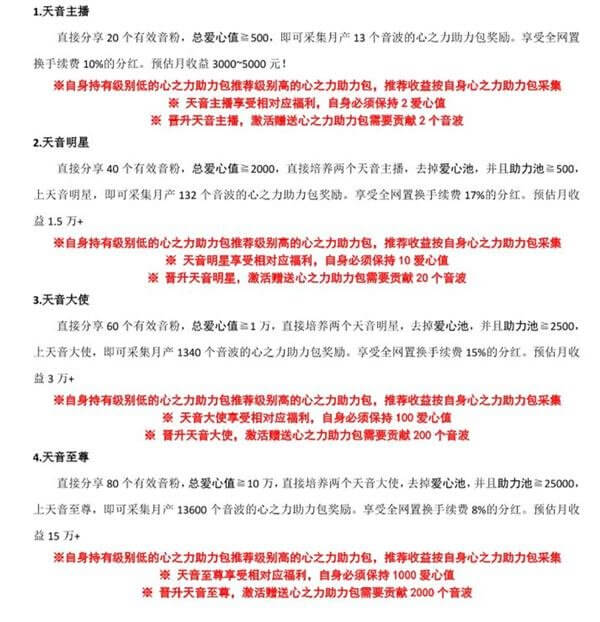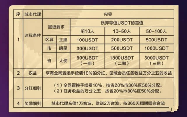 三、音粉参与助农产业建设可获得分润,分润收益表如下: